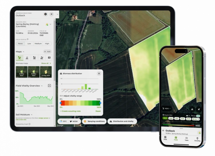 With Arvorum, you get all of the software tools to farm better as standard. Field boundaries can be downloaded from the RPA in moments, and the most recent three years of satellite imagery taken every few days in season can give you immediate insights into your crops.